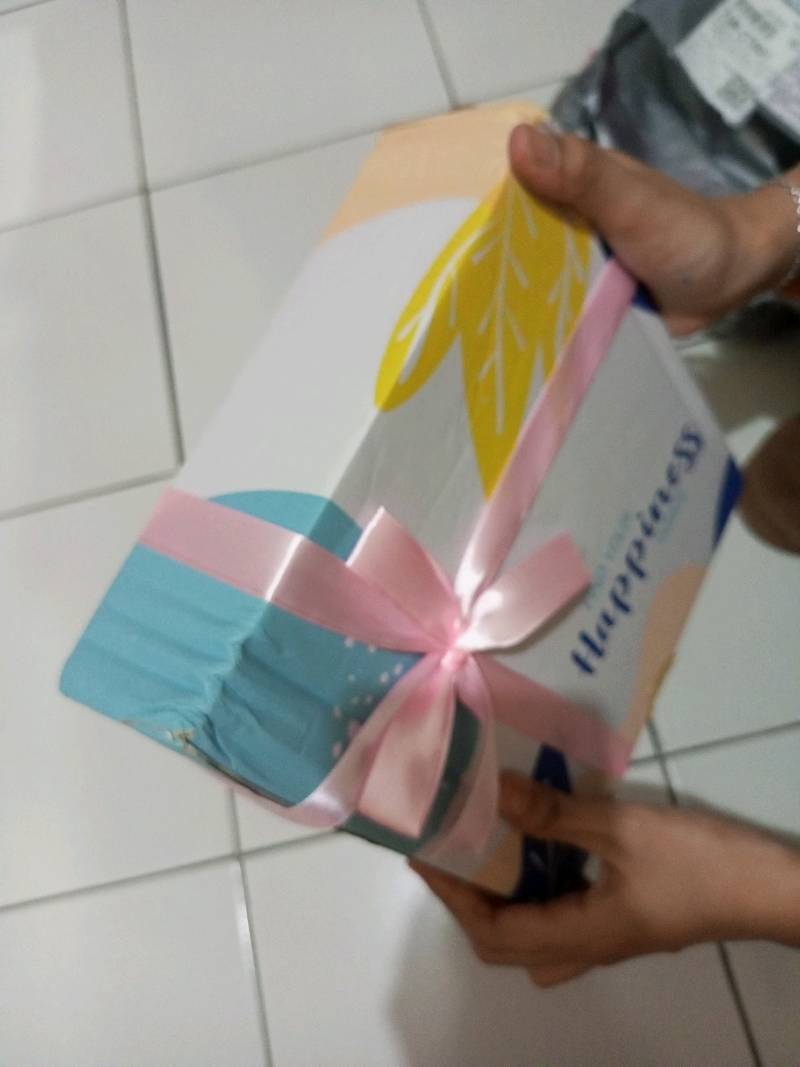 Cara pertama yang bisa anda coba adalah menambahkan pita pada bagian atas bungkus kertas kado.